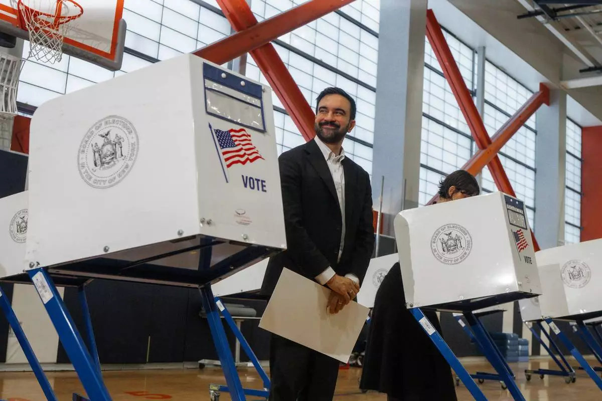 New York mayoral candidate Zohran Mamdani votes at a voting site on Tuesday, Nov. 4, 2025, in New York. (AP Photo/Olga Fedorova)