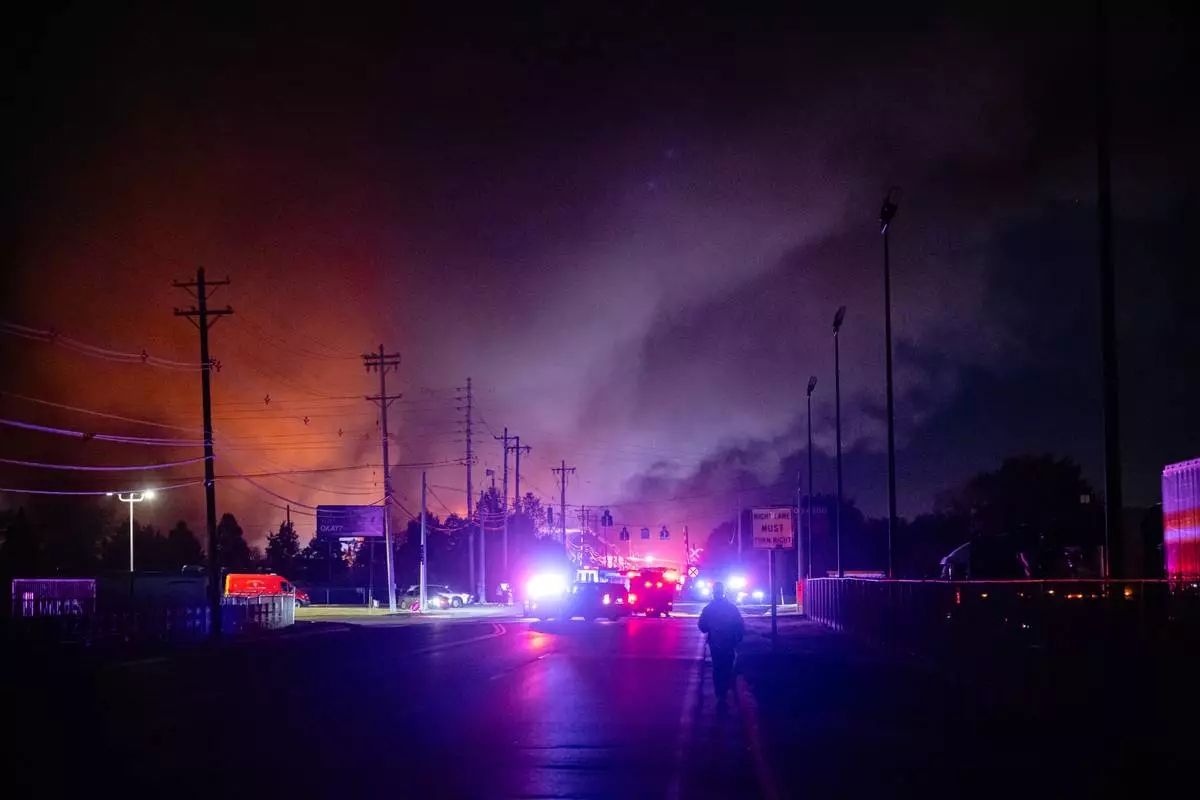 The blaze stretched nearly a city block and destroyed much of the plane's fuselage, fire officials said.