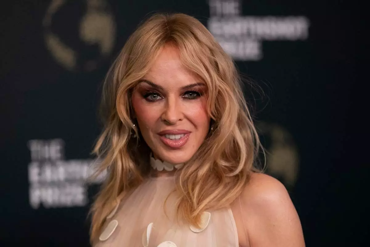 Australian singer Kylie Minogue poses for photos on the green carpet before the Earthshot Prize award ceremony at the Museum of Tomorrow in Rio de Janeiro, Wednesday, Nov. 5, 2025. (AP Photo/Bruna Prado)