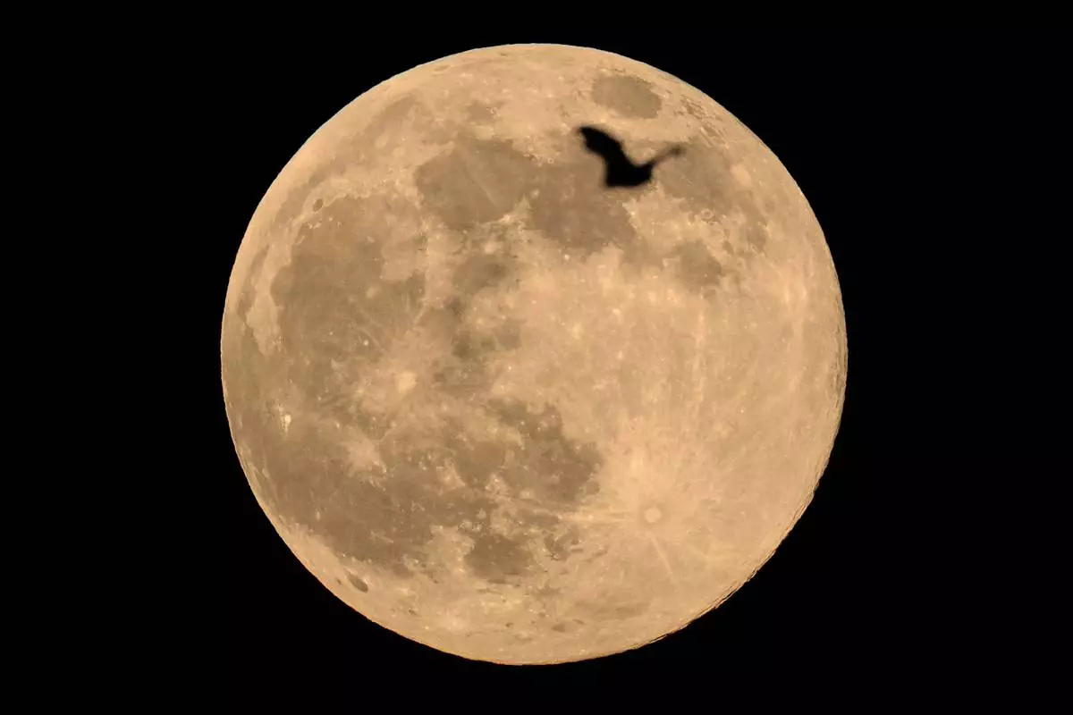 A bat flies in front of the Beaver Supermoon in Guwahati, India, Wednesday, Nov. 5, 2025. (AP Photo/Anupam Nath)