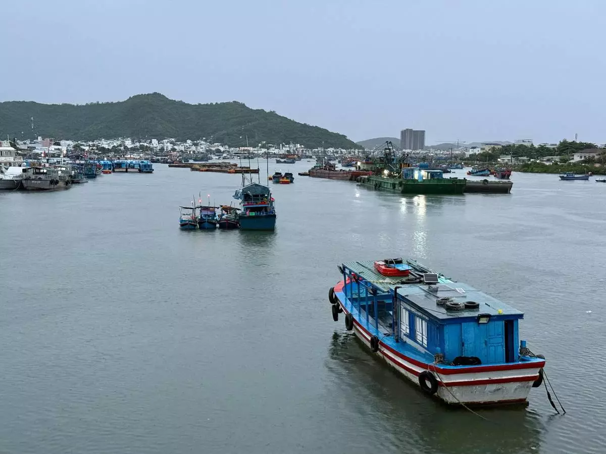 Boats docked at a shelter in Nha Trang, Vietnam as Typhoon Kalmaegi moves toward the country, on Thursday, Nov. 6, 2025. (AP photo/Hau Dinh)