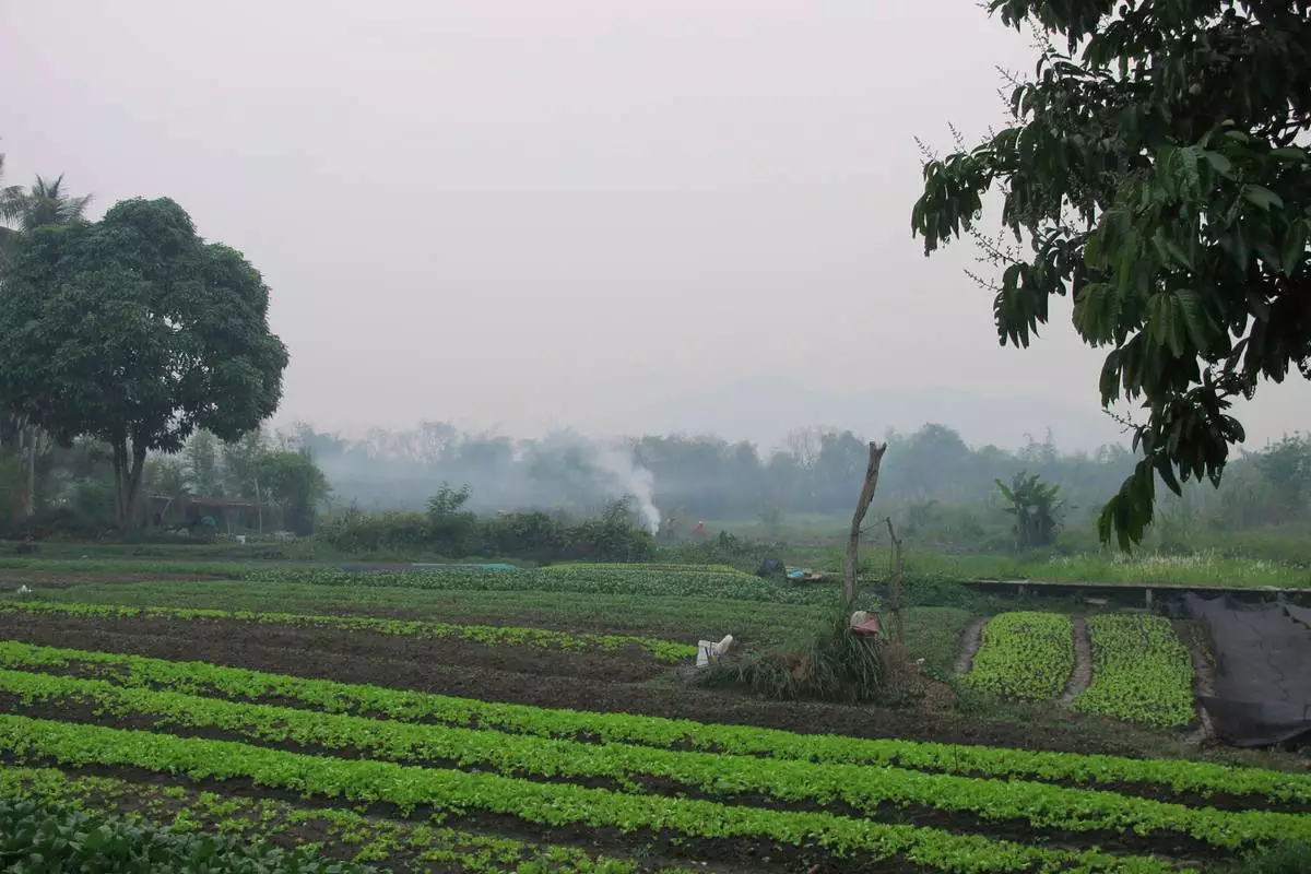 FILE - Farmers burn crop waste from a field outside the Laos UNESCO heritage site of Luang Prabang, Saturday, April 6, 2024. (AP Photo/Elaine Kurtenbach, File)