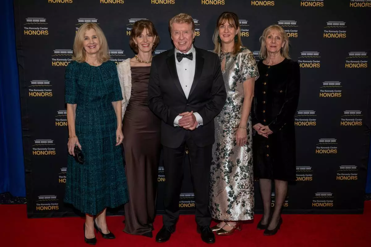 2025 Kennedy Center Honoree Michael Crawford, center, and his family arrive on the red carpet for the 48th Kennedy Center Honors Medallion Reception, hosted at the U.S. Department of State, Saturday, Dec. 6, 2025 in Washington. (AP Photo/Kevin Wolf)