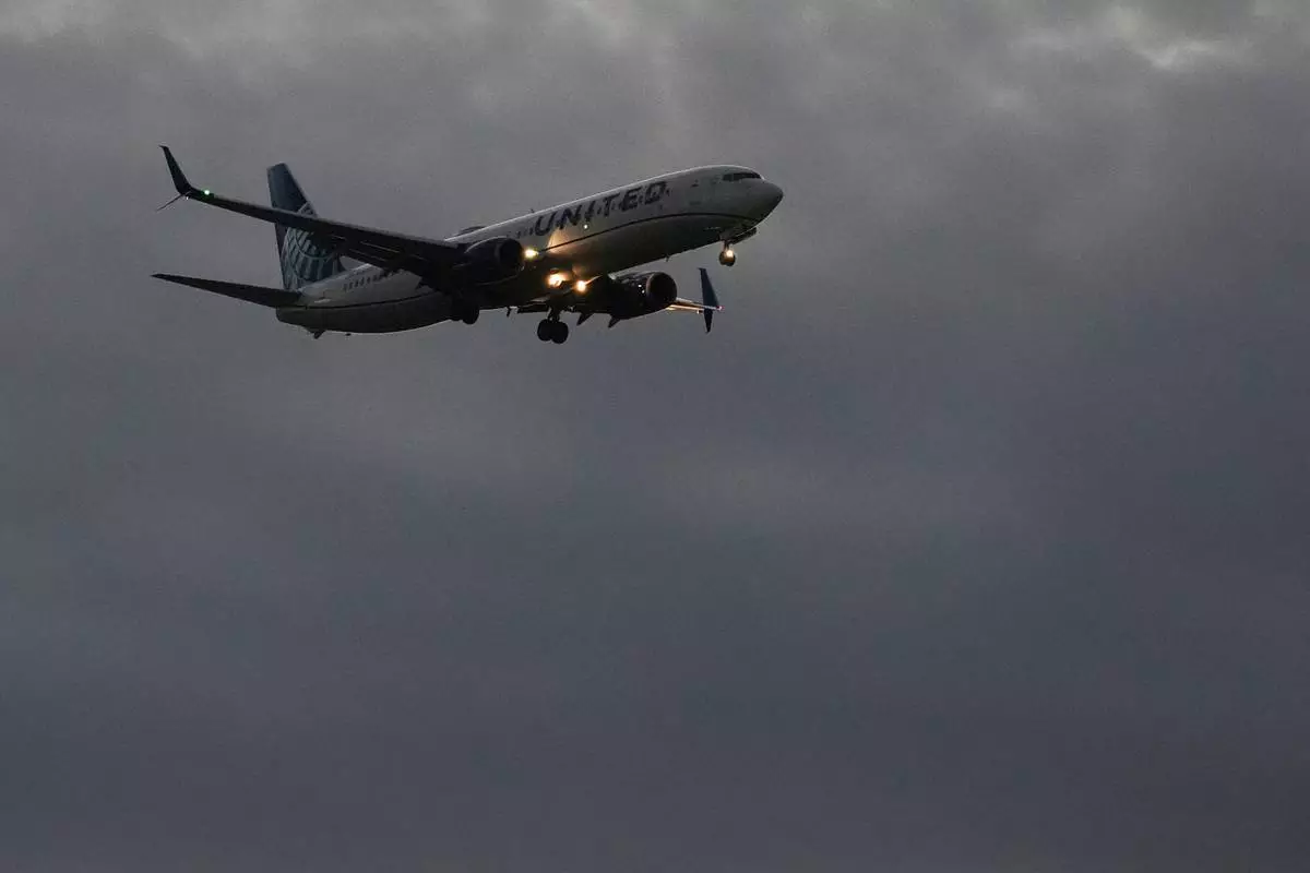 An United Airlines flight arrives at O'Hare International Airport in Chicago, Monday, Nov. 3, 2025. (AP Photo/Nam Y. Huh)