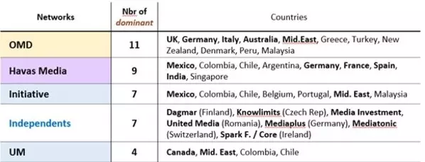 Concurrently, RECMA reported that OMD "naturally stands out as the most balanced agency" in terms of the consistency of its performance across the 45 markets studied, ranking Dominant or High Profile in 64% of all markets.