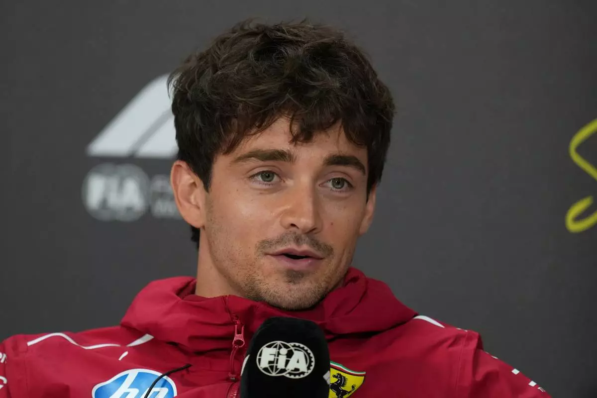 Ferrari driver Charles Leclerc, of Monaco, speaks during a press conference ahead of the Brazilian Formula One Grand Prix at the Interlagos race track in Sao Paulo, Thursday, Nov. 6, 2025. (AP Photo/Andre Penner)
