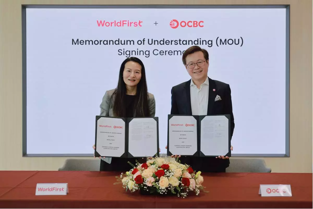 Clara SHI, Vice President of Ant International and CEO of WorldFirst, and Melvyn LOW, Head of Global Transaction Banking at OCBC, signed the memorandum of understanding (MOU) in Singapore.