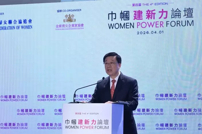 The Chief Executive, Mr John Lee, speaks at the Fourth Edition of Women Power Forum today (April 1). Source: HKSAR Government Press Releases