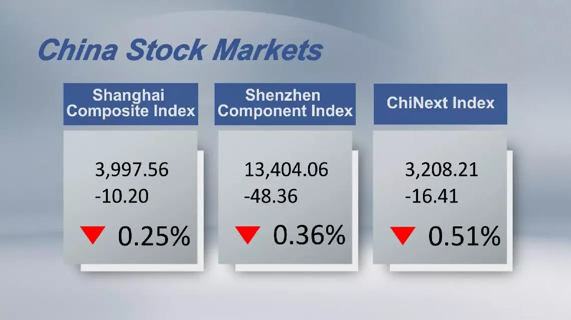 Chinese stocks closed lower Friday, with the benchmark Shanghai Composite Index down 0.25 percent to 3,997.56 points.