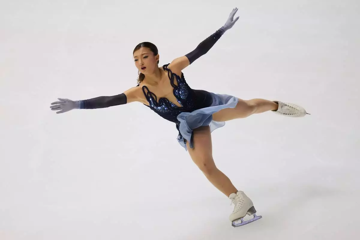 Skating to “Time to Say Goodbye,” Sakamoto landed a triple lutz, a double axel and a triple flip-triple toe loop combination on her way to a season-best score of 77.05, almost 10 points ahead of Sofia Samodelkina of Kazakhstan who was second with 67.75.
