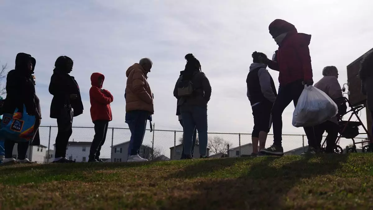 People wait in line durning an emergency food distribution at The Jewish Federation of Greater Philadelphia's Mitzvah Food Program in Philadelphia, Friday, Nov. 7, 2025. (AP Photo/Matt Rourke)