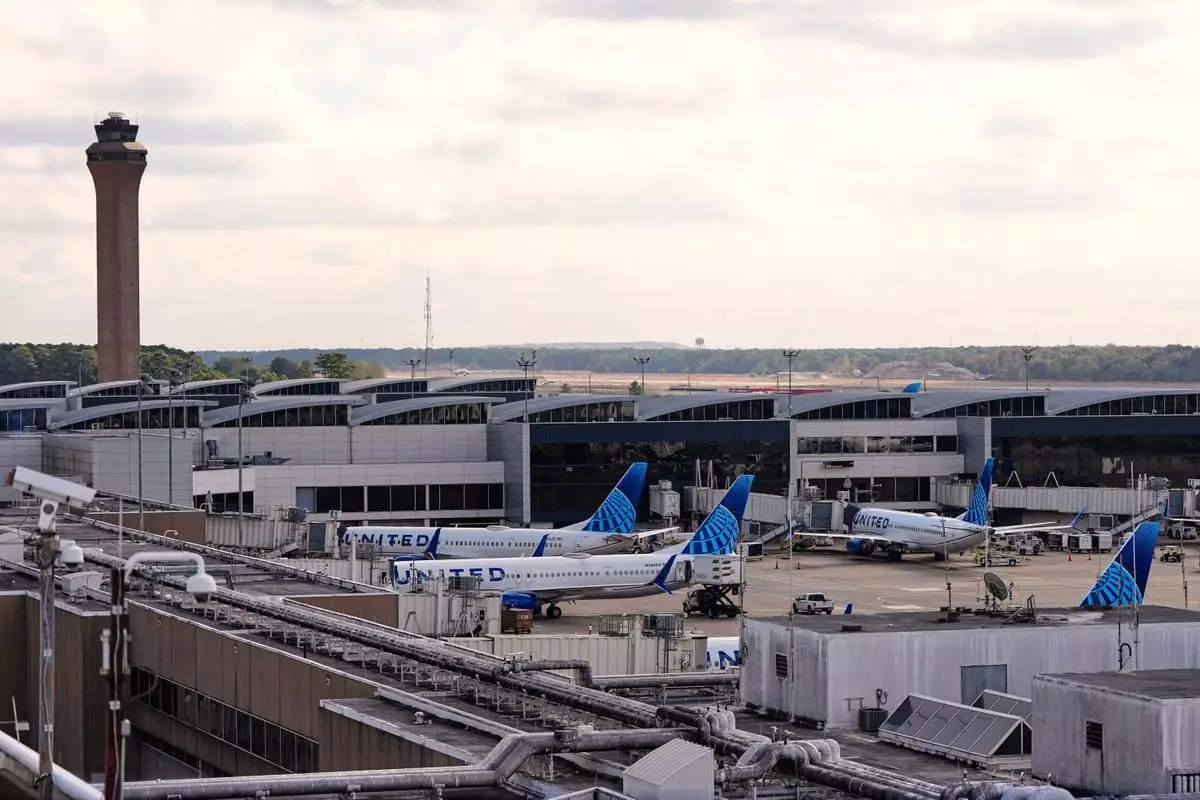 United Airlines planes are parked at gates at George Bush Intercontinental Airport on Friday, Nov. 7, 2025, in Houston. (AP Photo/Ashley Landis)