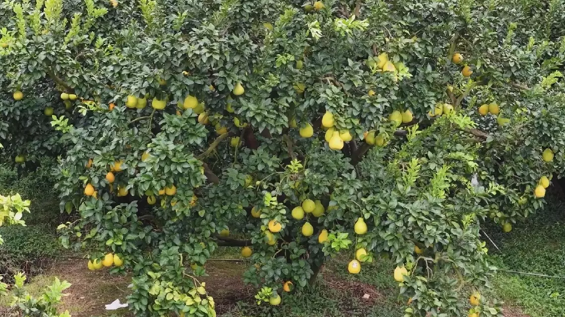 "We happened to be here harvesting pomelos, when the general secretary came over. Seeing the fruit-filled trees, he asked us about the purchase price this year. And it's over 6 yuan per kilo. As one pomelo weighs 1 to 1.5 kilograms, it could sell for nearly 10 yuan," said Chen Zengli, a fruit farmer.