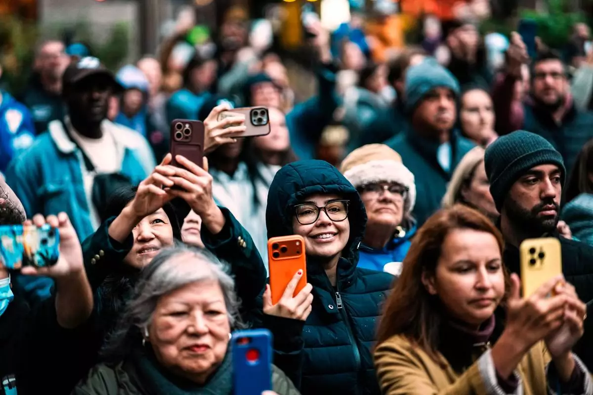 The crowds were much bigger at 30 Rockefeller Plaza, where workers used cranes to hoist the 11-ton tree into position overlooking the iconic skating rink. People gathered with coffee cups and phones as crews secured the spruce and began the careful process of stabilizing it.