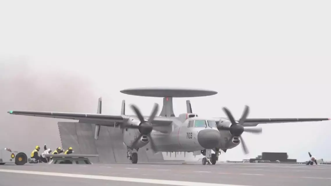 "To meet the requirement of combat operation, the aircraft features a distinctive design. First, it must be capable of taking off and landing on an aircraft carrier. Compared to conventional land-based transport aircraft, it has a much stronger structural built to withstand catapult launches, arrested landings, and significant overload forces on the deck. Another notable aspect of its appearance is the vertical stabilizers. While traditional aircraft typically have one or two vertical fins, the KJ-600 is equipped with four, providing enhanced tail control capability. As a result, the tail surfaces are designed to be larger," said Geng Yansheng, director of Xi'an Aircraft Research and Design Institute with Aviation Industry Corporation of China (AVIC).
