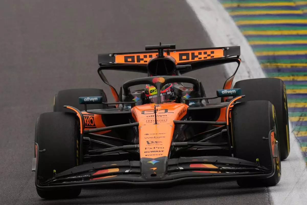McLaren driver Oscar Piastri of Australia drives during the Brazilian Formula One Grand Prix at the Interlagos race track in Sao Paulo, Sunday, Nov. 9, 2025. (AP Photo/Andre Penner)
