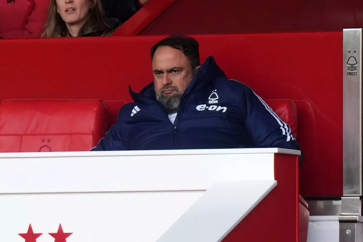 Nottingham Forest owner Evangelos Marinakis follows the English Premier League soccer match between Nottingham Forest and Leeds United, in Nottingham, England, Sunday Nov. 9, 2025. (Mike Egerton/PA via AP)