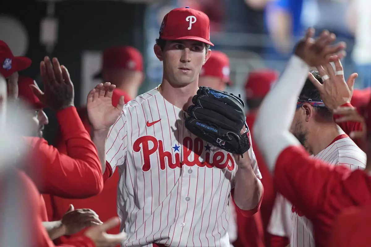 PHILADELPHIA (AP) — Andrew Painter hopped off the mound in excitement in the fifth inning after his 97.2 mph fastball got James Wood to strike out for a second time.