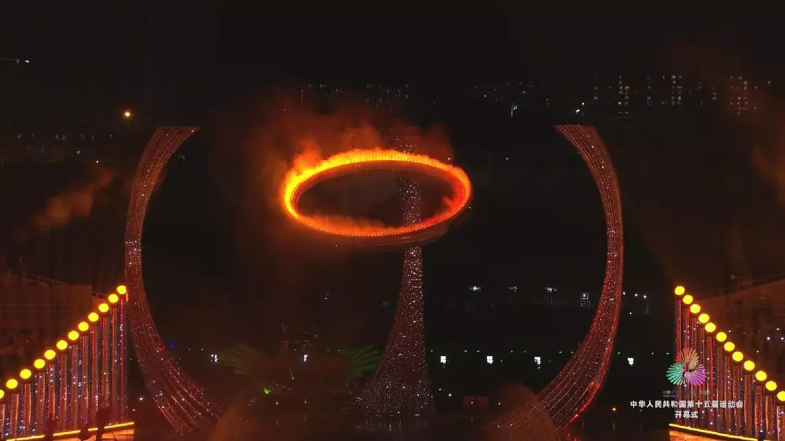 The opening ceremony of China's 15th National Games on Sunday featured a "torch of technology", marking the first-ever non-fire main cauldron in the event's history.