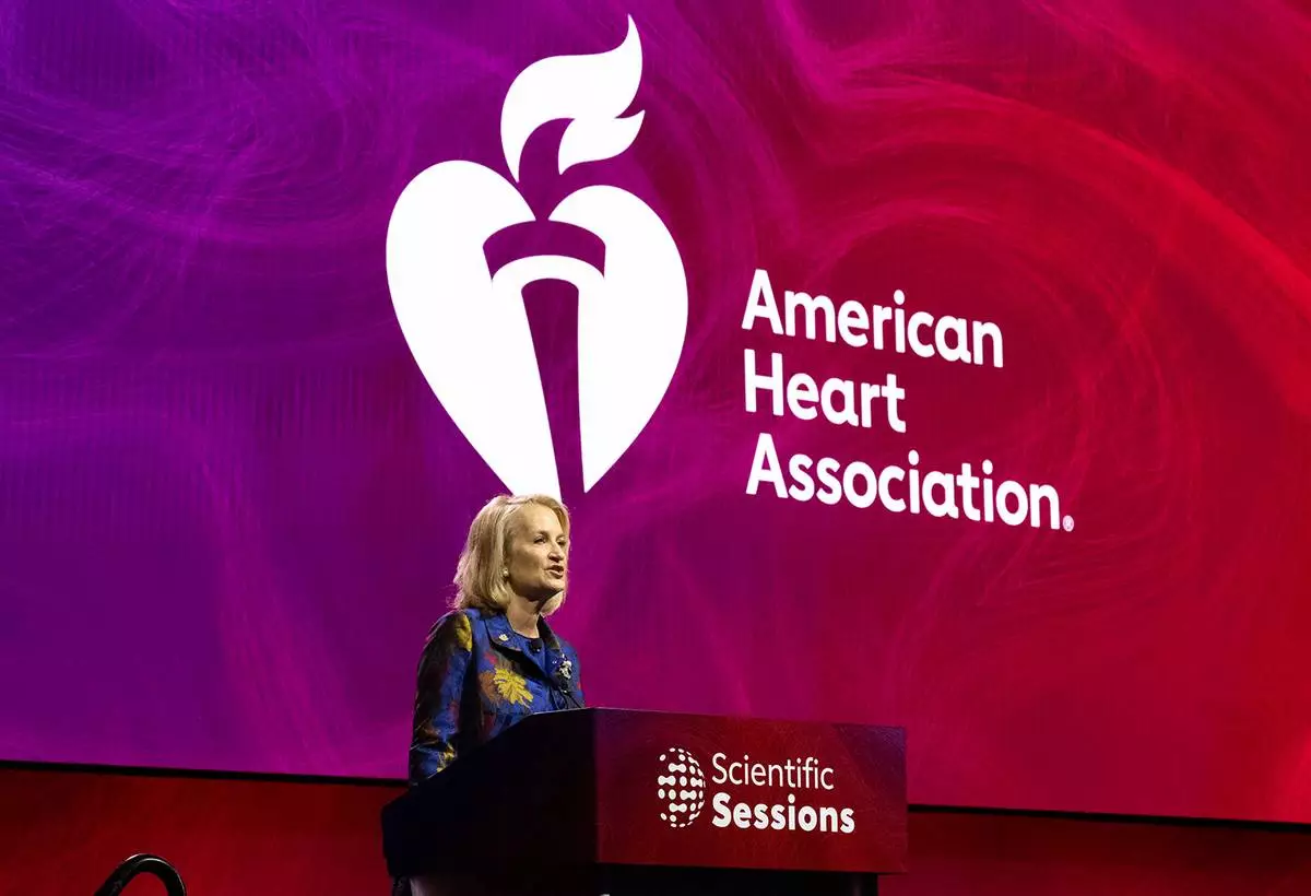 Dr. Stacey E. Rosen delivers her presidential keynote at the American Heart Association’s annual Scientific Sessions. (Credit: American Heart Association).