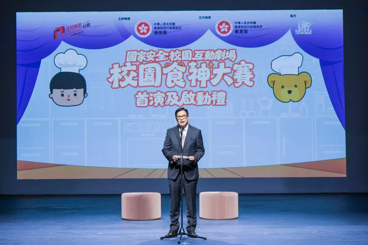 Set against the background of "Andy and Security Bear", the national security comics launched by the SB that have been well received by students, the National Security Interactive School Drama - Campus Chef Challenge brings out important national security concepts and messages through relatable storylines in a simple and easy-to-understand manner. By adding interactive elements, the drama allows students to join the main characters, Andy and Security Bear, through questions and answers as well as interactive games, to deepen the understanding of the importance of safeguarding national sovereignty and security and fight against misconduct that endangers national security. The interactive drama, produced by Spring-Time Experimental Theatre, will be performed in at least 20 primary schools across the city in the coming months following its formal launch today.