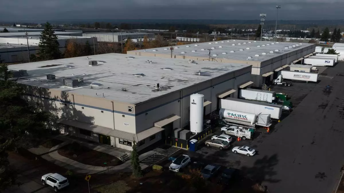 Vehicles are seen at a building that houses ByHeart, a manufacturer of organic baby formula, plant on Tuesday, Nov. 11, 2025, in Portland, Ore. (AP Photo/Jenny Kane)