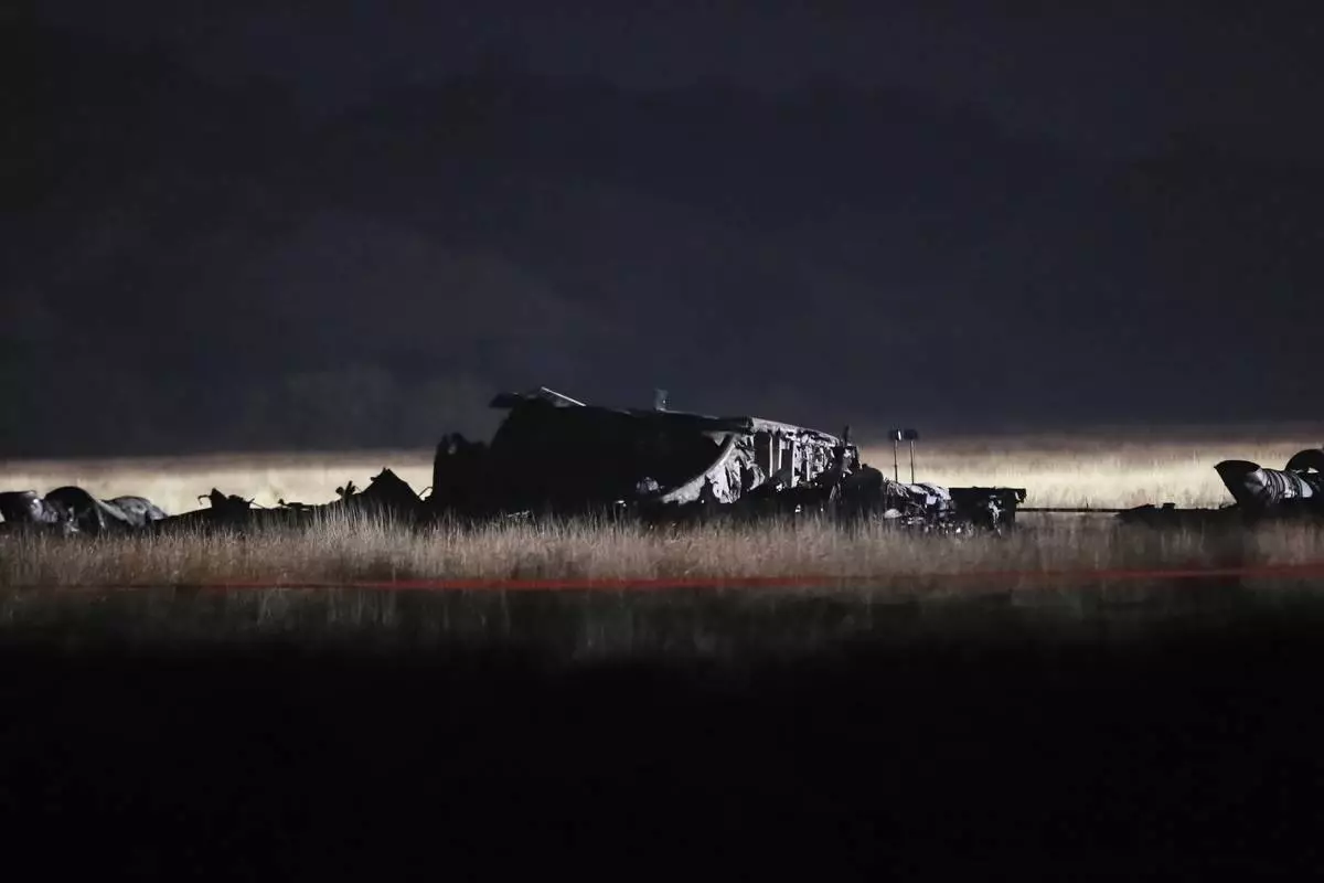 Debris is seen at a crash site of a Turkish military cargo plane in Georgia's Sighnaghi municipality, close to the Azerbaijani border on Wednesday, Nov. 12, 2025. (AP Photo/Zurab Tsertsvadze)