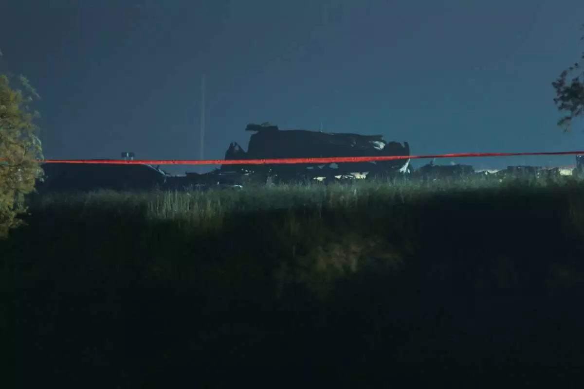 This photo released by Georgian Interior Ministry Press Service shows an emergency vehicle on a crash site of Turkish C-130 military cargo near the border between Georgia and Azerbaijan on Tuesday, Nov. 11, 2025. (Georgian Interior Ministry Press Service via AP)