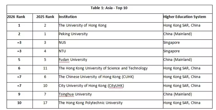 The 2026 results confirm a more multipolar Asian higher education landscape.