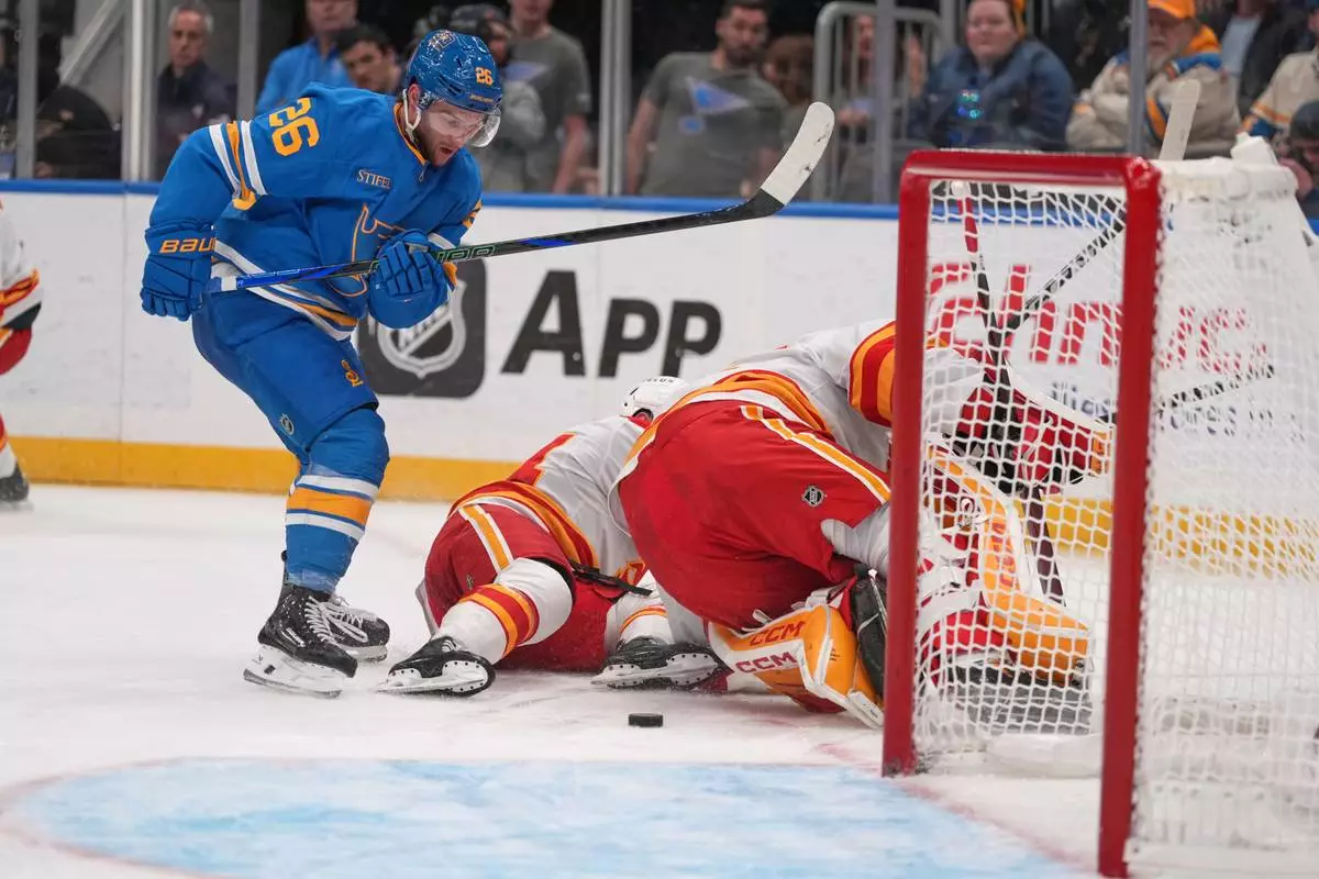 ST. LOUIS (AP) — Nathan Walker scored the game-winning goal and Oskar Sundqvist added two assists, lifting the St. Louis Blues to a 3-2 victory over the Calgary Flames on Tuesday night.