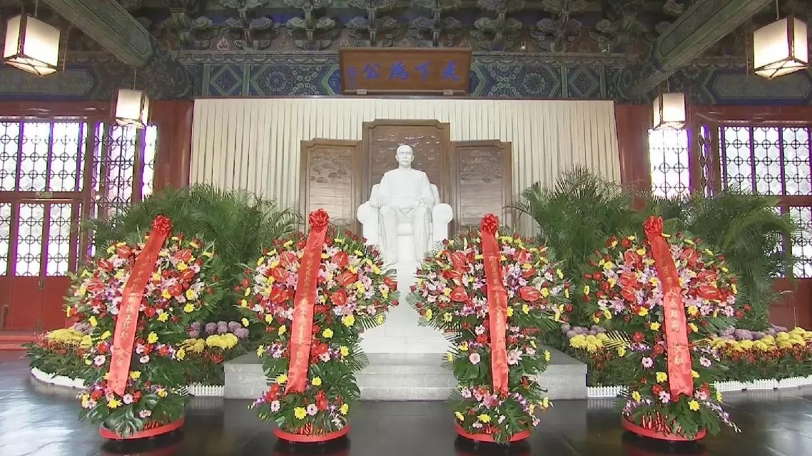 Senior officials from the CPPCC National Committee, the Central Committee of the Revolutionary Committee of the Chinese Kuomintang, the United Front Work Department of the Communist Party of China Central Committee, and the Beijing municipal government laid flowers in front of Sun's statue.