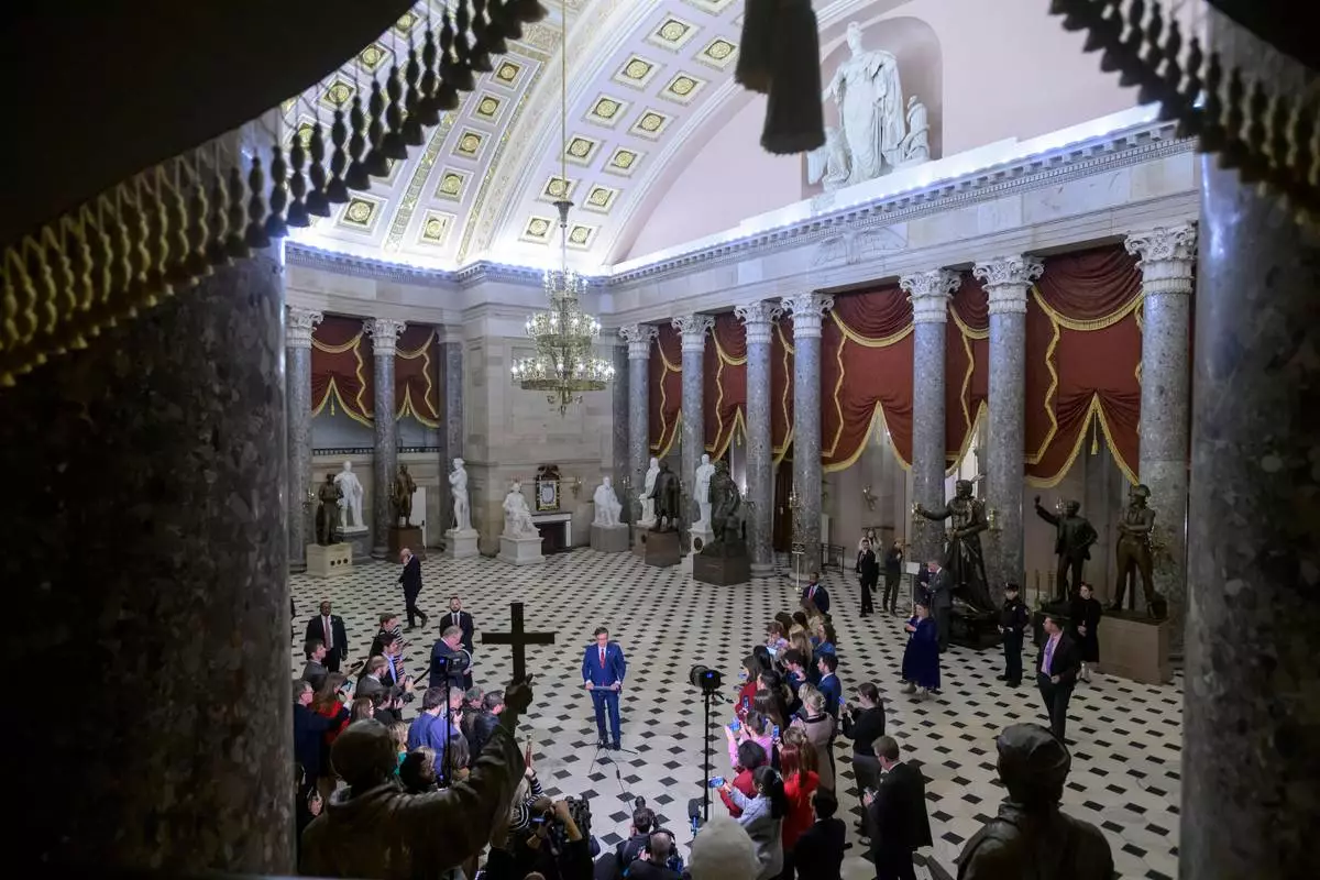 The language seems aimed at helping Republican senators pursue damages if their phone records were analyzed by the FBI as part of an investigation into Trump's efforts to overturn his 2020 election loss to Democrat Joe Biden. The provisions drew criticism from Republicans as well. Johnson said he was “very angry about it.”