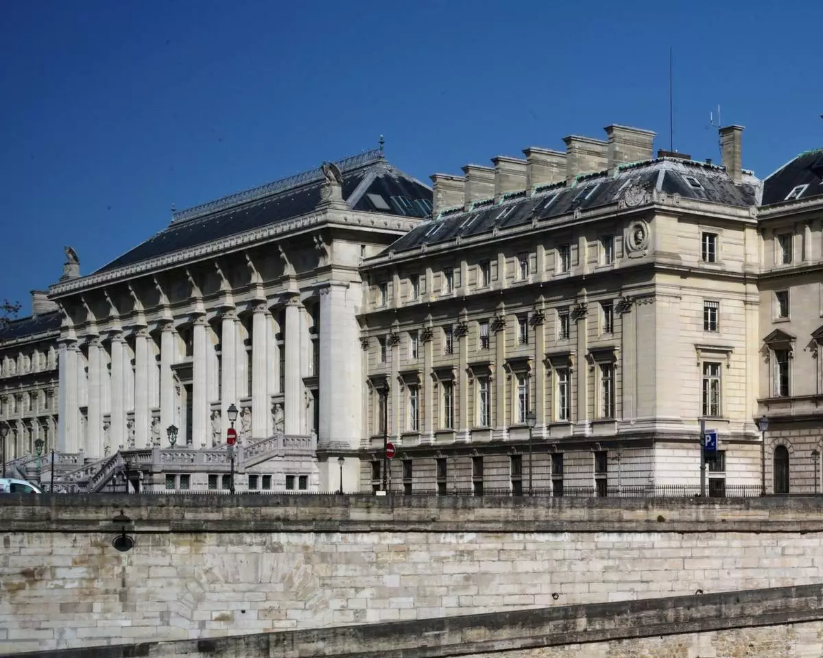 FILE - The Palais de Justice courthouse during nationwide confinement measures to counter the Covid-19, in Paris, Wednesday, April 8, 2020. (AP Photo/Thibault Camus, file)