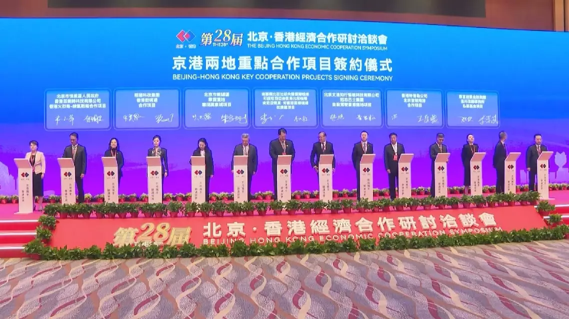 Under the theme "Beijing Hong Kong Strategic Partnership for Global Connectivity," the event saw the signing of 29 cooperation projects across 11 sectors including technology services, business services, finance, and culture and tourism.