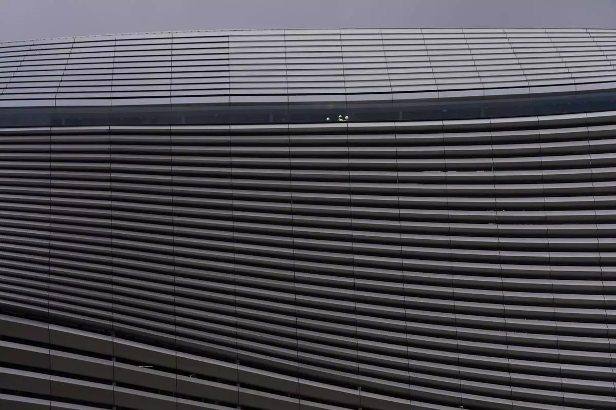 General view of the renovated Santiago Bernabeu stadium in Madrid, Spain, Tuesday, Nov. 11, 2025. (AP Photo/Bernat Armangue)