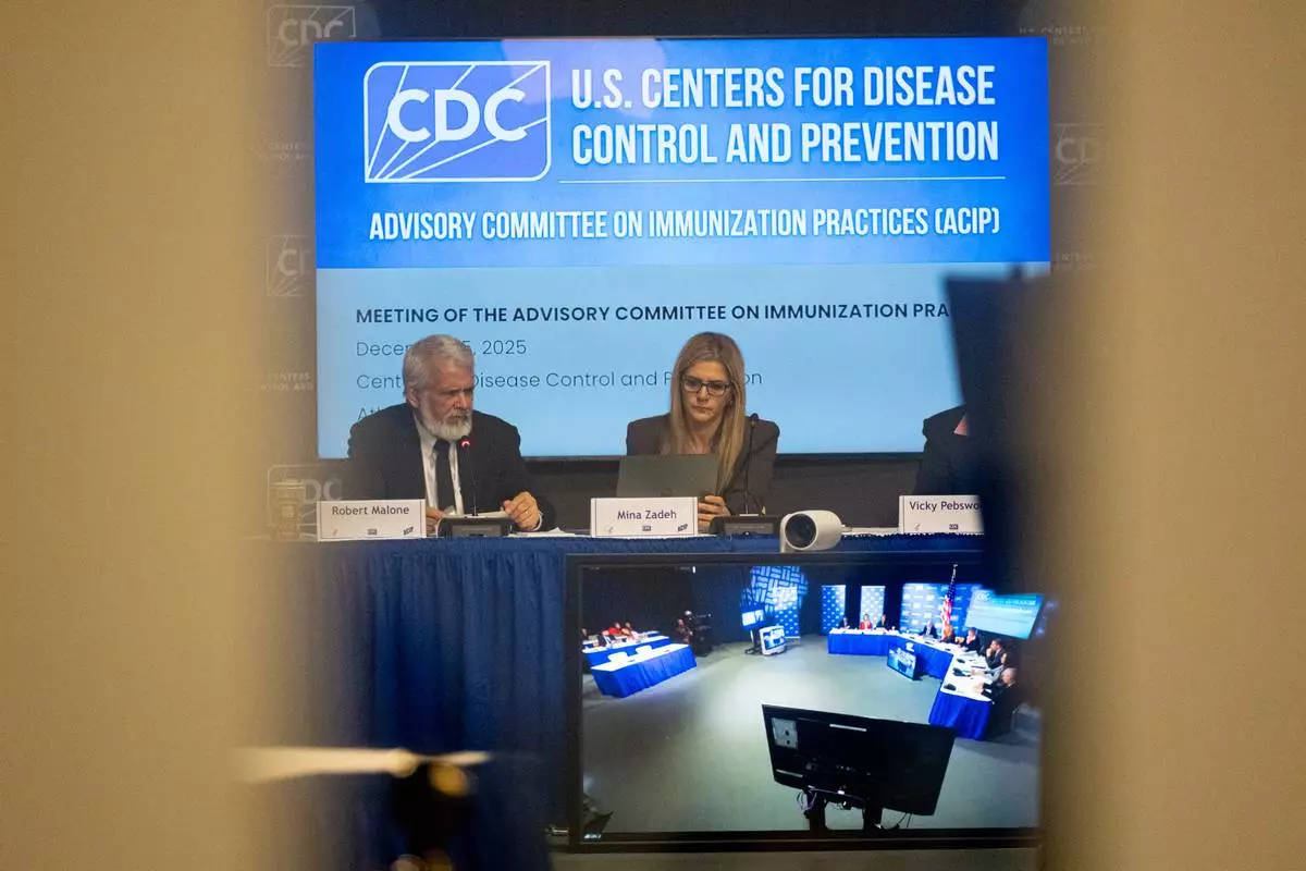 The CDC Advisory Committee on Immunization Practices votes to recommend changes to the infant hepatitis B vaccination policy during a meeting in Atlanta on Friday, Dec. 5, 2025. (AP Photo/Ben Gray)