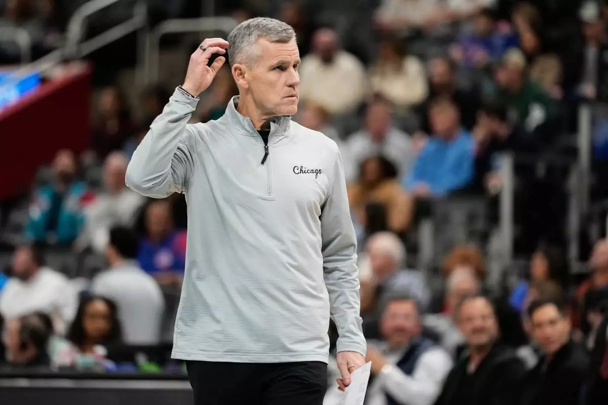 Chicago Bulls head coach Billy Donovan stands on the court during the first half of an NBA basketball game against the Detroit Pistons, Wednesday, Nov. 12, 2025, in Detroit. (AP Photo/Ryan Sun)