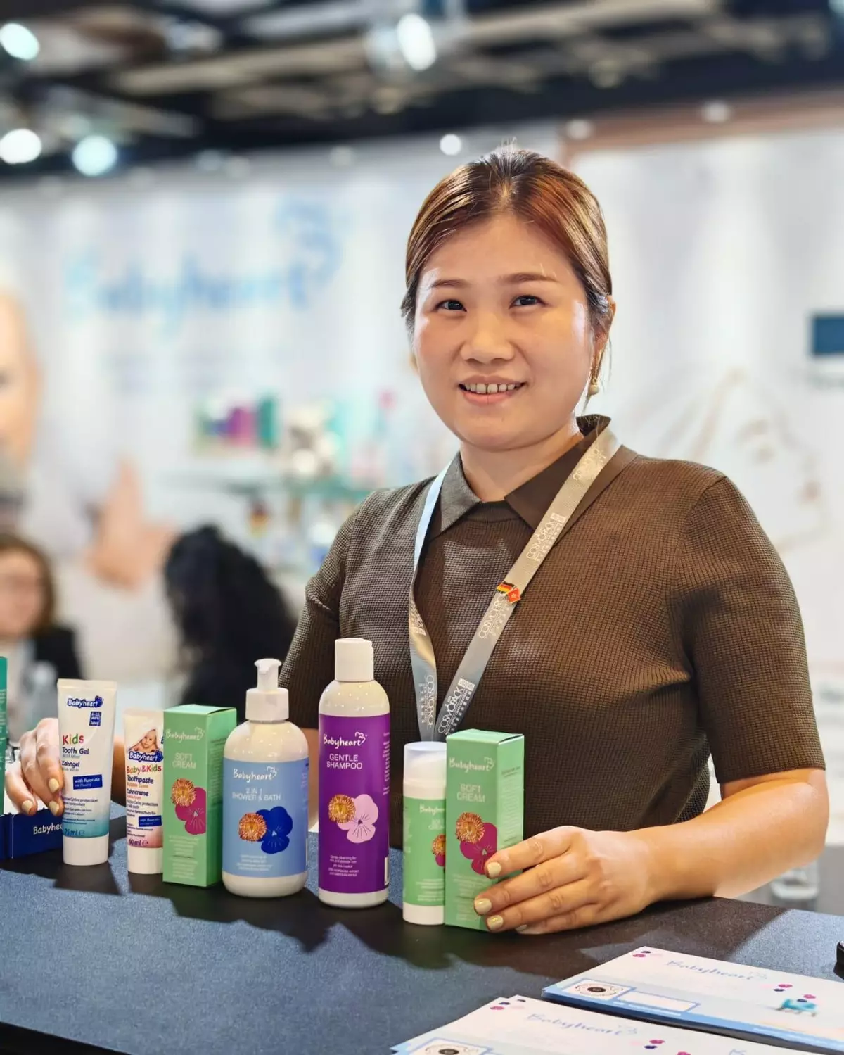 The German brand「Babyheart」has exhibited a series of skin care products targeting children, which adopts oils of natural plants and fruits as raw materials to create a safe and comfortable skin care experience for children. Having participated in the exhibition multiple times, the person in charge stated that the customers in Hong Kong are more professional with sharp market insight compared to other regions. She hopes the brand can utilize the current trend of live streaming to attract more celebrities and KOLs to participate in brand building together in 2025.