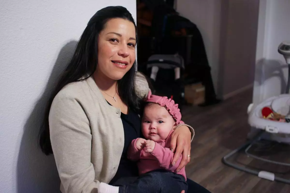 Yurany Dexter holds her 4-month-old daughter, who was recently hospitalized for botulism, at their home in Flagstaff, Ariz. on Wednesday, Nov. 12, 2025. (AP Photo/Cheyanne Mumphrey)