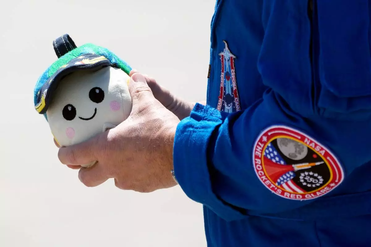 The three Americans and one Canadian waved and shaped their hands into hearts as they emerged from crew quarters to cheers and said goodbye to their families. The crowd applauded and cheered again as the astronauts boarded their astrovan for the nine mile (14-kilometer) ride to the launch pad.