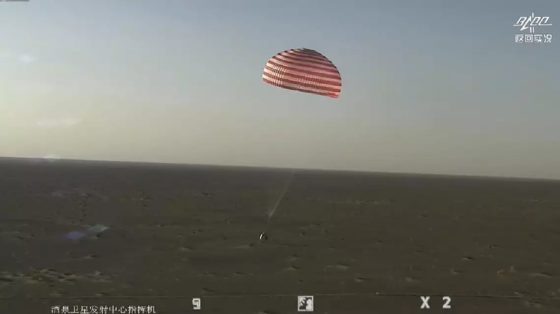 The return capsule of the Shenzhou-21 spaceship, carrying the Shenzhou-20 astronauts Chen Dong, Chen Zhongrui and Wang Jie, touched down at the Dongfeng landing site in north China's Inner Mongolia Autonomous Region on Friday.