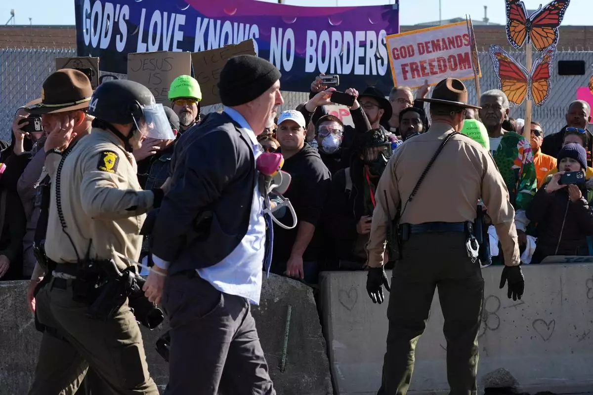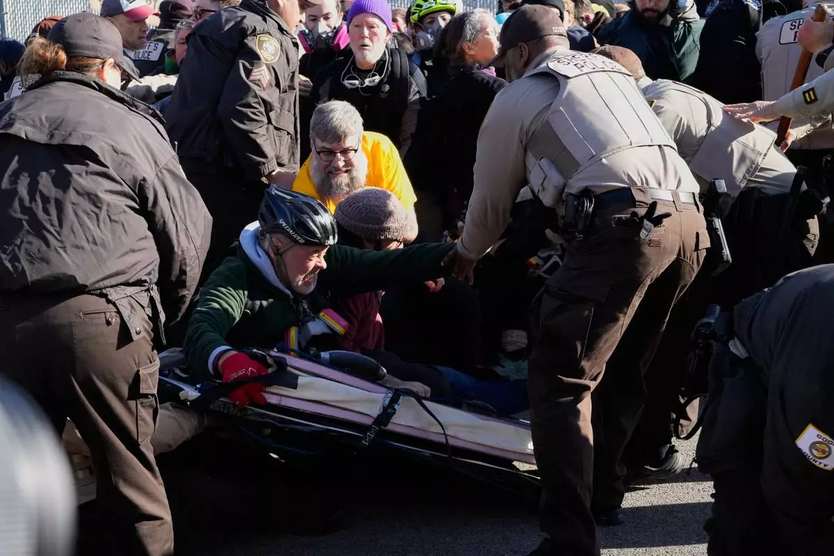 Just moments before the clash, demonstrators were singing and chanting. Around 10 a.m., a large group, knowing they were going to be arrested, allegedly crossed the protest barrier and attempted to walk up toward the U.S. Immigration and Customs Enforcement facility.