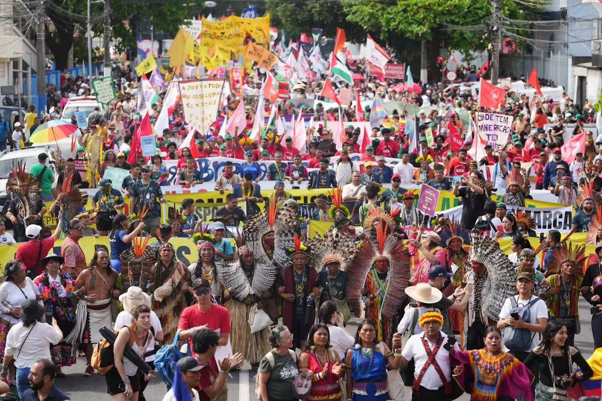 The demonstrators walked about 4 kilometers (about 2.5 miles) on a route that took them near the main venue for the talks, known as COP30. Protesters earlier this week twice disrupted the talks by surrounding the venue, including an incident Tuesday where two security guards suffered minor injuries.