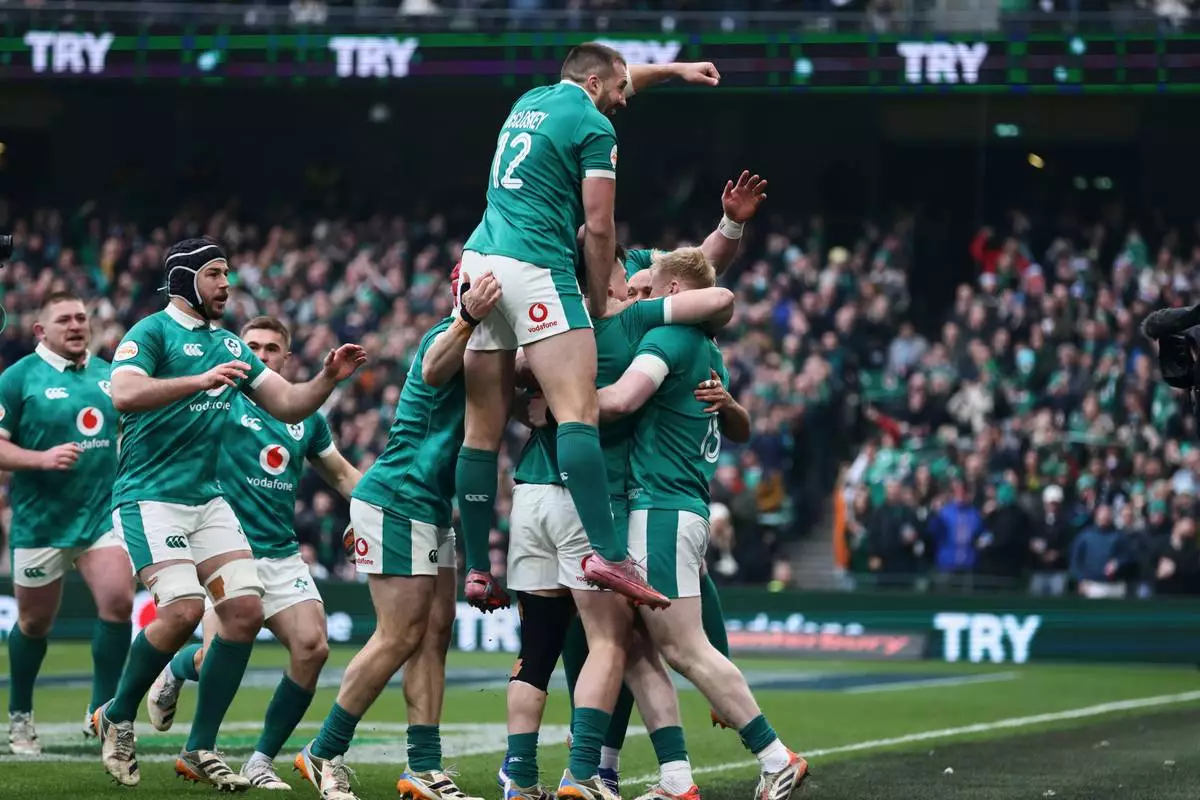The Irish are three points ahead of France, which hosts England in the day's last match in Paris. France can take the title by beating England or even drawing with a bonus point.