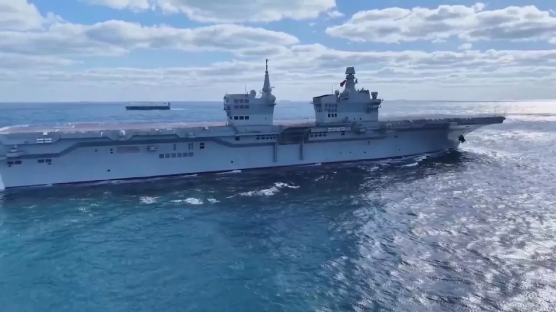 The PLANS Sichuan has a full-load displacement of over 40,000 tons and features a dual-island superstructure along with a full-length flight deck, making it easy to identify it.