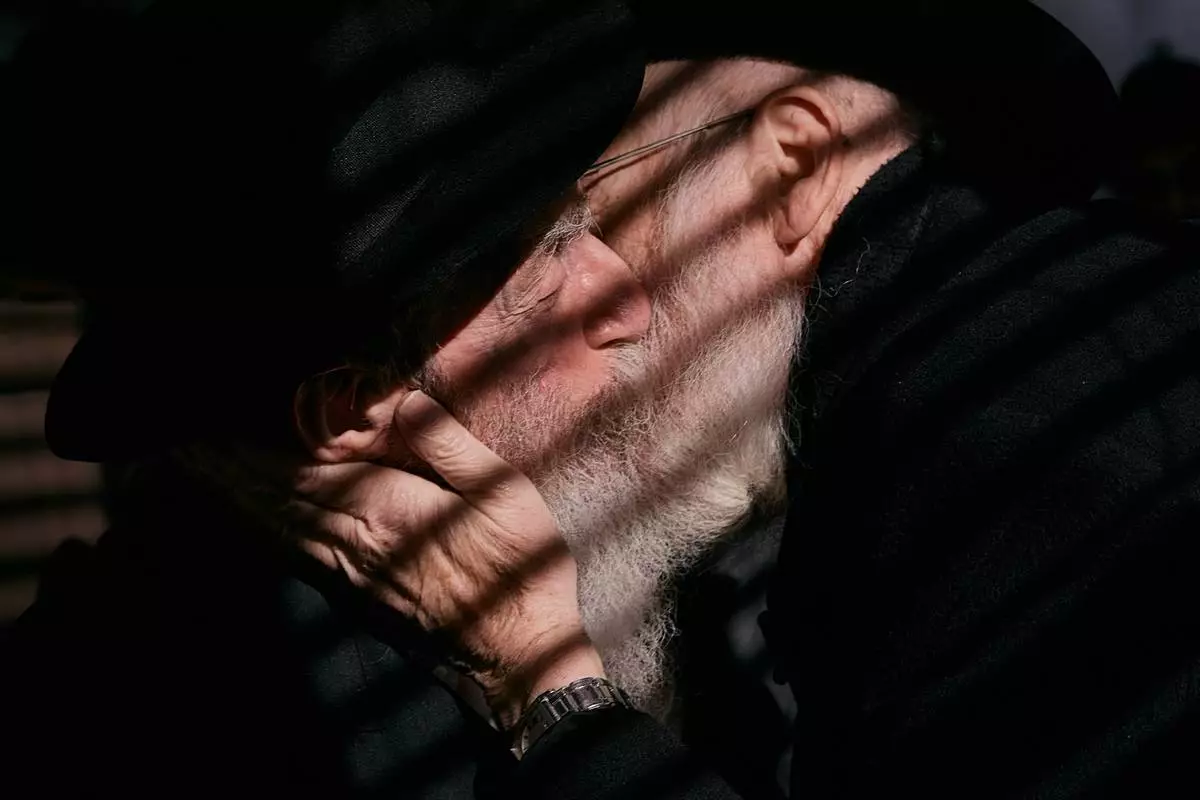 Chabad-Lubavitch rabbis kiss as they gather at the resting place of the Rebbe, Rabbi Menachem M. Schneerson, one of Judaism’s most influential figures, in the Queens borough of New York on Friday, Nov. 14, 2025, during the International Conference of Chabad-Lubavitch Emissaries. (AP Photo/Andres Kudacki)