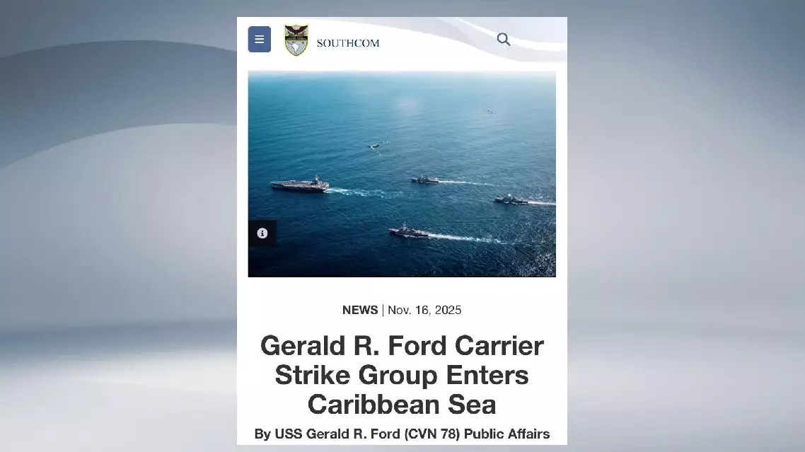 US carrier arrives in Caribbean Sea, escalating tensions with Venezuela