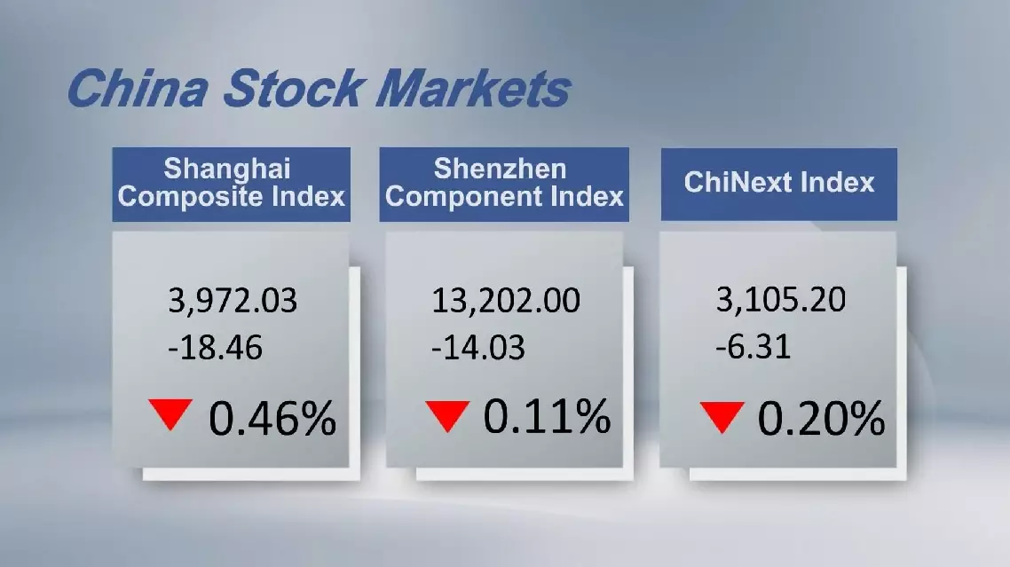 Chinese stocks closed lower on Monday, with the benchmark Shanghai Composite Index down 0.46 percent to 3,972.03 points.