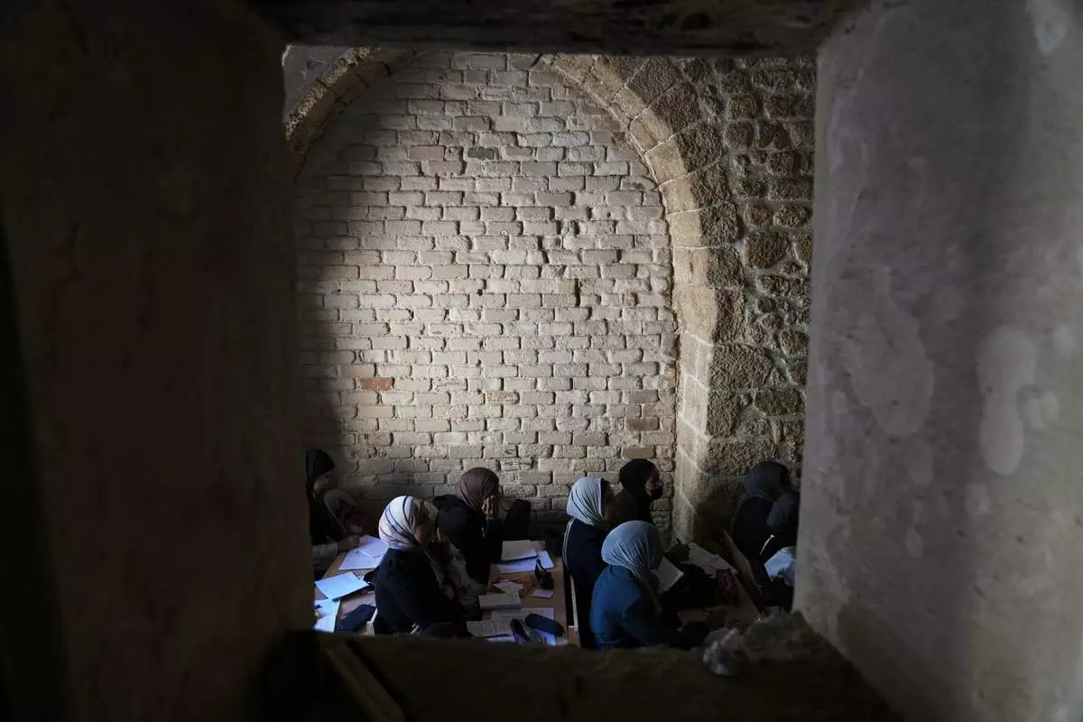 Palestinian high school students return to class, weeks after a ceasefire was announced between Israel and Hamas, at the Kamilia School in the Old City of Gaza City, Wednesday, Nov. 12, 2025. (AP Photo/Jehand Alshrafi)