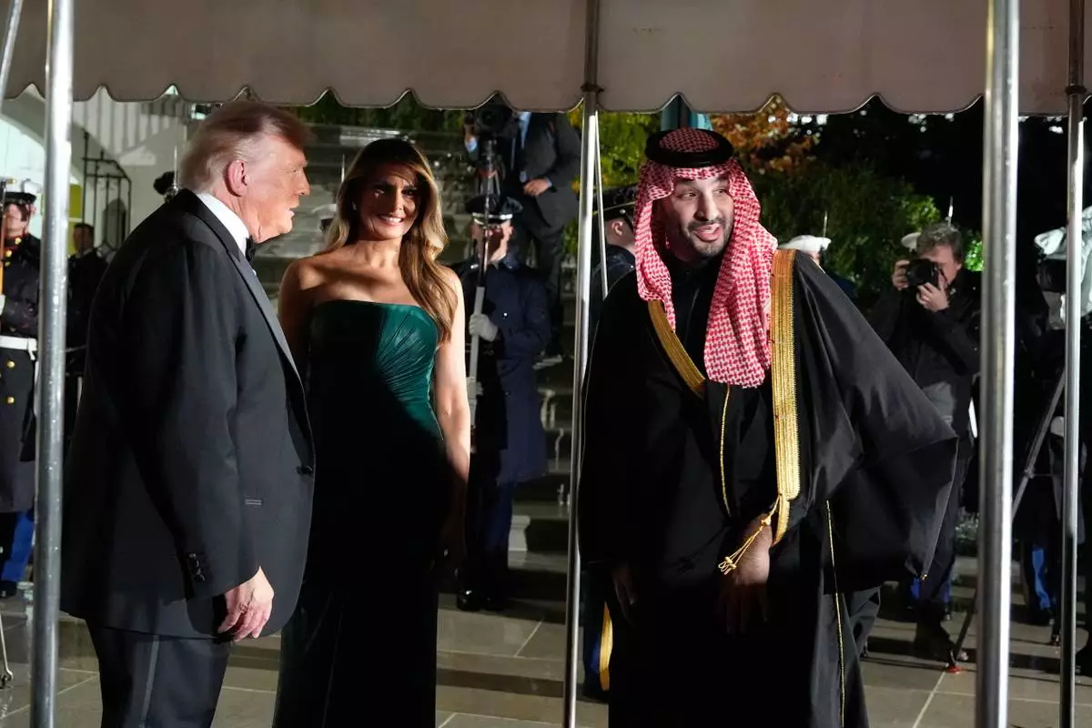Later, Trump and first lady Melania Trump welcomed the crown prince for a black-tie dinner in the White House East Room. The boldface names who attended included Nvidia CEO Jensen Huang, tech entrepreneur Elon Musk and soccer star Cristiano Ronaldo.